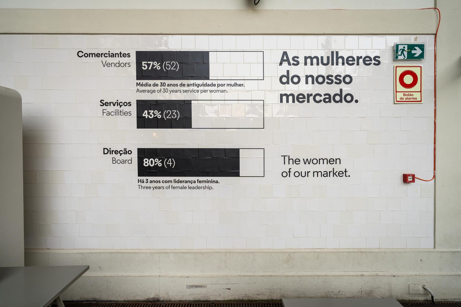 Já na entrada pela Rua Formosa há lugar para uma instalação intitulada “As Mulheres do nosso Mercado”. Esta “radiografia” feminina mostra indicadores sobre as mulheres que asseguram o funcionamento diário do espaço. Outra das curiosidades prende-se com o facto de a direção do Bolhão ser assegurada no feminino há três anos.