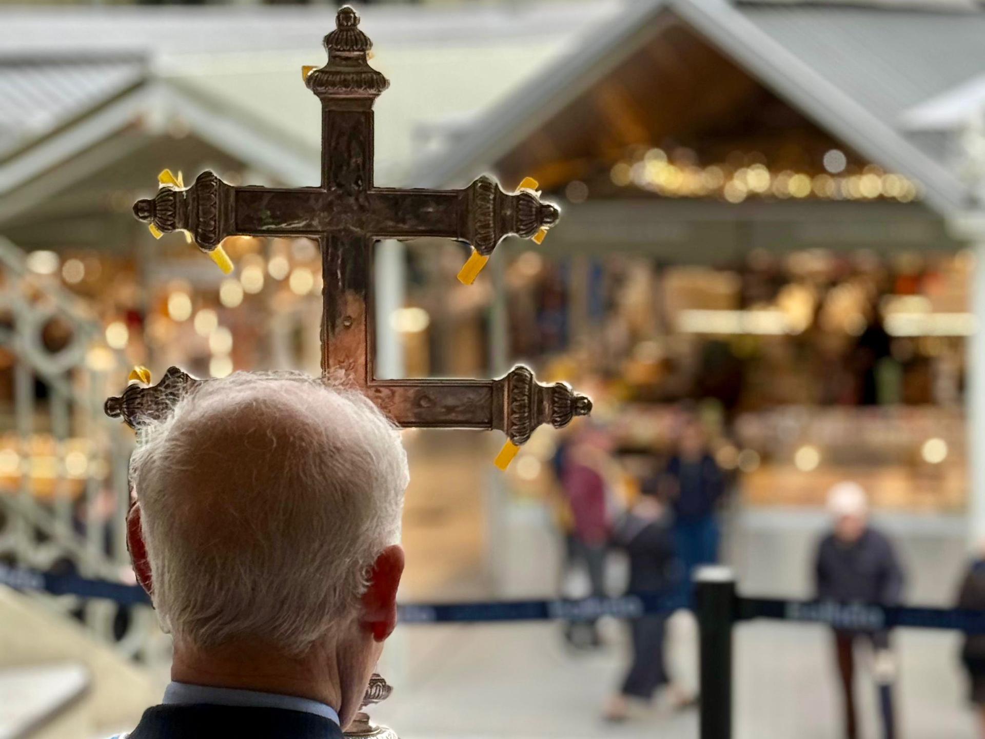 O cortejo, que arrancou pelas 10h00, percorreu todos os espaços do mercado — do terrado aos restaurantes e galerias — levando a bênção a comerciantes e clientes. O evento foi marcado por momentos de convívio e pela lembrança de costumes antigos, como a criação de tapetes de flores para saudar a passagem da cruz.